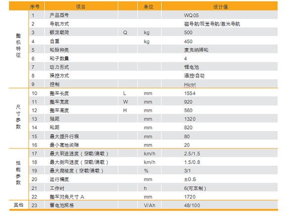 可以牽引不同類型的工作臺車與倉儲籠,非標定制不同起升高度 (210~650mm);手動遙控定位精度達到±0.5mm;激光避障傳感器消除安全隱患,通過激光導航、磁導航、視覺導航實現智能無人化;安裝專用屬具,適應不同工況,選配鉛酸蓄電池或鋰電池。