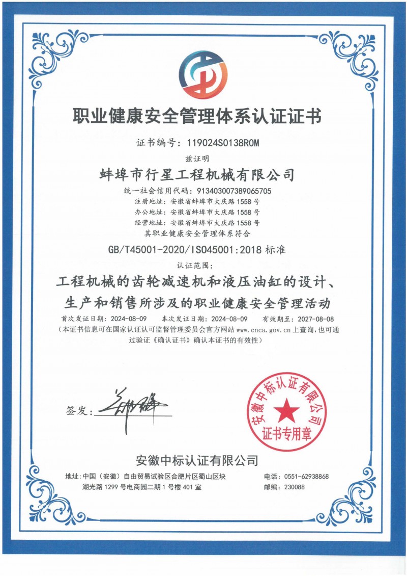 發證機構:   安徽中標認證有限公司 發證時間 :   2024-08-09