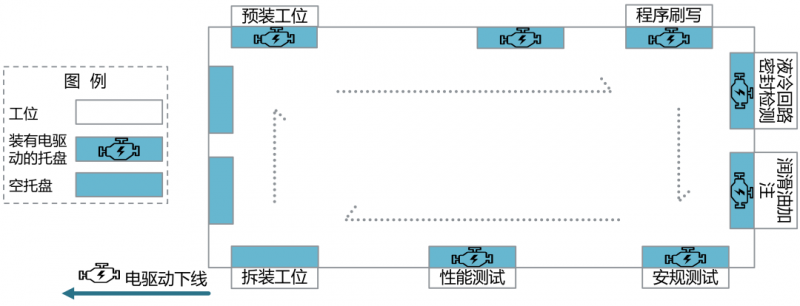區(qū)別于原先的單工位測試,回轉(zhuǎn)式自動測試在現(xiàn)有下線測試形式中速度最快、效率最高,可使裝載有電驅(qū)動的托盤在線體上連續(xù)運行,并與各測試工位自動對接測試,輕松應(yīng)對多達數(shù)十項的測試項目,實現(xiàn)電驅(qū)動的連續(xù)下線。