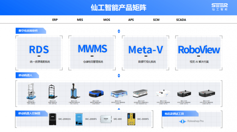 為了解決客戶最核心的痛點(diǎn),仙工智能智能、高效、可靠、易用的端到端工業(yè)物流解決方案,涵蓋軟件產(chǎn)品統(tǒng)一資源調(diào)度系統(tǒng) RDS,倉儲物流管理系統(tǒng) MWMS,數(shù)據(jù)可視化系統(tǒng) meta-V,視覺 AI 解決方案;硬件產(chǎn)品 SRC 移動(dòng)機(jī)器人控制器、以及基于 SRC 的各類移動(dòng)機(jī)器人,如激光 SLAM 自動(dòng)叉車,激光 SLAM 料箱機(jī)器人,頂升機(jī)器人、復(fù)合機(jī)器人等。各類客戶都可以根據(jù)自己的需要從其中獲取理想且滿足定制要求的軟硬件產(chǎn)品及解決方案。
