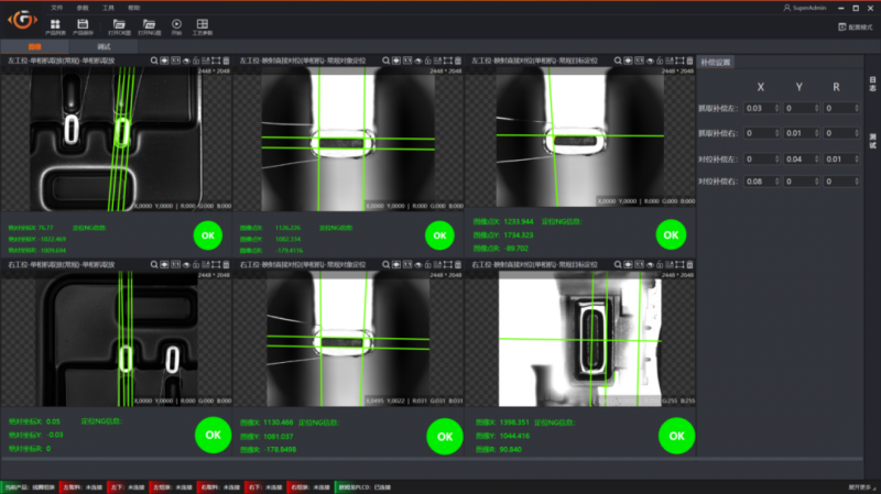 框架軟件針對于3C行業定位應用積累了大量組裝定位和點膠應用模板,能夠兼容多相機、多吸嘴、多拍照位、分離軸和飛拍等各類機構流程,同時框架軟件提供定位精度分析排查等自動化問題排查工具,快速定位解決生產問題。