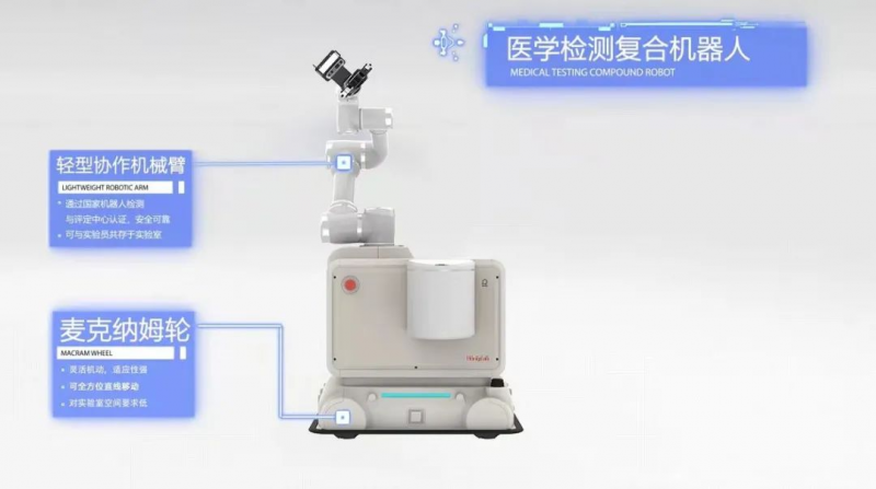 將機器人應用在醫學檢測中,這是機器人在醫療應用中重要的突破口,也是智慧醫療、數字醫療重要的切入點。今年初,節卡機器人聯合上海宏灘生物科技有限公司,在全國首次推出醫學檢測復合機器人。為與日俱增的醫學檢測工作壓力,送上了真正的“數字化福音”。