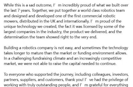 1月23日,英國商用割草機器人廠商 Kingdom Technologies 宣布進入清算程序。其CEO發(fā)文表示,非常自豪曾組建起世界一流的機器...
