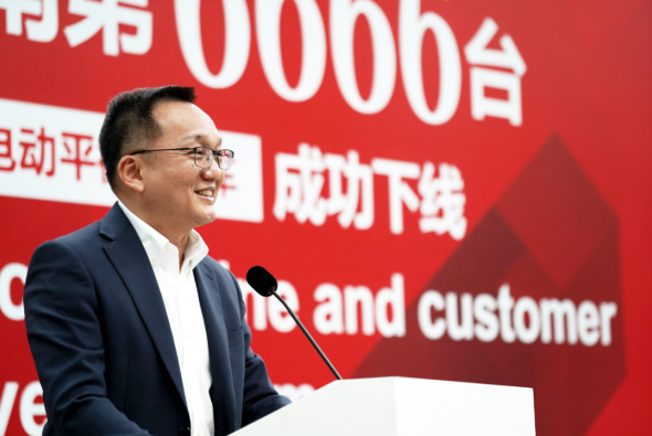 濟南工廠第6666臺林德3.5噸電動平衡重叉車下線儀式在濟南萊蕪智慧工廠盛大舉行