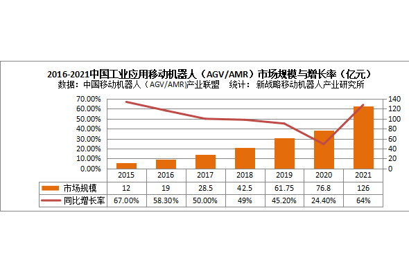 2021年光伏行業(yè)AGV/AMR占整體市場5.2%,銷售量約為3500臺,規(guī)模為6億元。