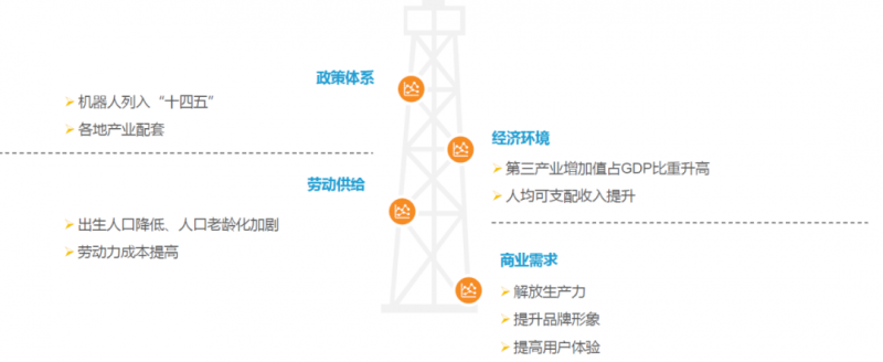 “政策 +經(jīng)濟(jì) +勞動(dòng) +商業(yè)”加持, 驅(qū)動(dòng)著商用服務(wù)賽道高速發(fā)展。