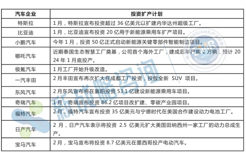 圖表:2023年部分汽車企業投資擴產計劃