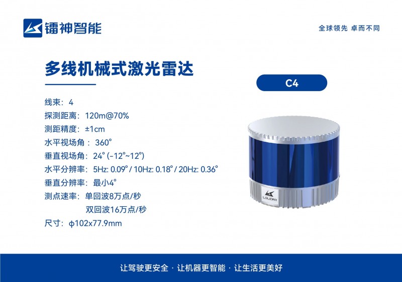 鐳神智能多線機械式激光雷達C4、C8和CH16R,產(chǎn)品主打高性能,價格降至“千元級”,讓客戶真正體驗到激光雷達的價值與作用,我們期待有更多客戶選擇鐳神智能激光雷達進行智能空間感知場景的開發(fā)與落地應用。