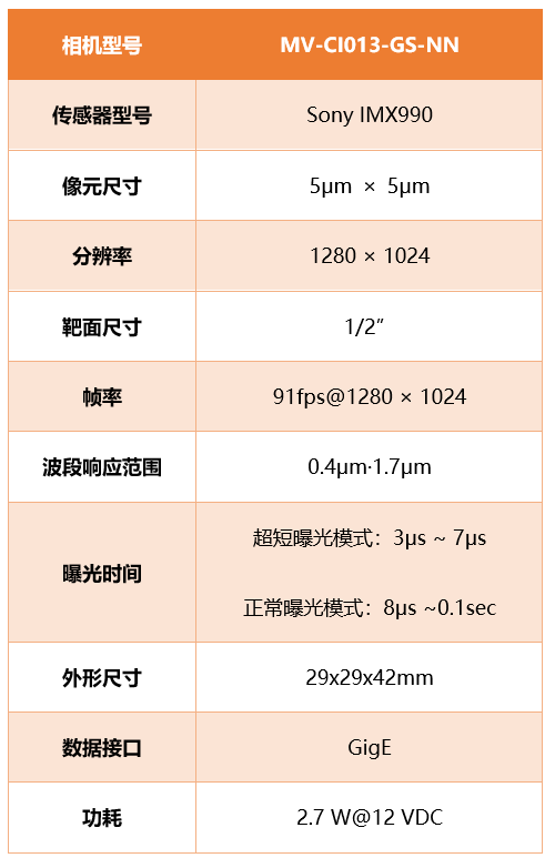 MV-CI013-GS-NN工業SWIR相機,搭載InGaAs 傳感器,內置多種圖像預處理功能;不帶風扇和TEC制冷,使得相機可以具備更低的功耗;通過GigE接口實時傳輸非壓縮圖像,具備高幀率。