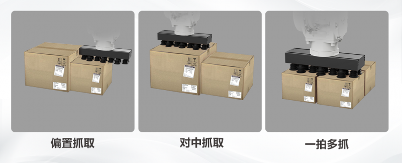 RP機(jī)器人視覺引導(dǎo)平臺可以提供多種抓取順序規(guī)則,通過拖拽式流程搭建和簡單的參數(shù)配置,實(shí)現(xiàn)偏置抓取、對中抓取、一拍多抓、一抓多箱、智能端拾器抓取IO分配等多種抓取方式的應(yīng)用,滿足不同場景下對于抓取效率和生產(chǎn)柔性的個性化需求。