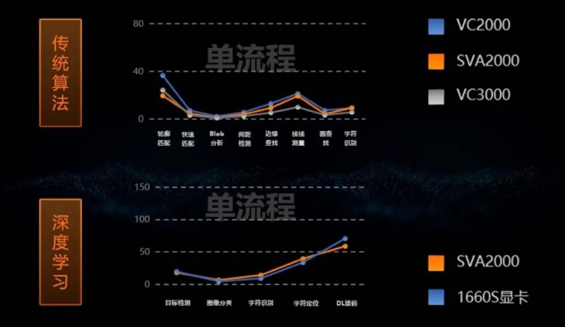 SVA2000利用硬件平臺(tái)的異構(gòu)特性對(duì)軟件架構(gòu)和算法效率進(jìn)行了深度優(yōu)化,在4相機(jī)應(yīng)用場(chǎng)景下,它的性能可以對(duì)齊桌面級(jí)CPU和GPU,能夠滿足大部分多相機(jī)視覺(jué)應(yīng)用的節(jié)拍要求。