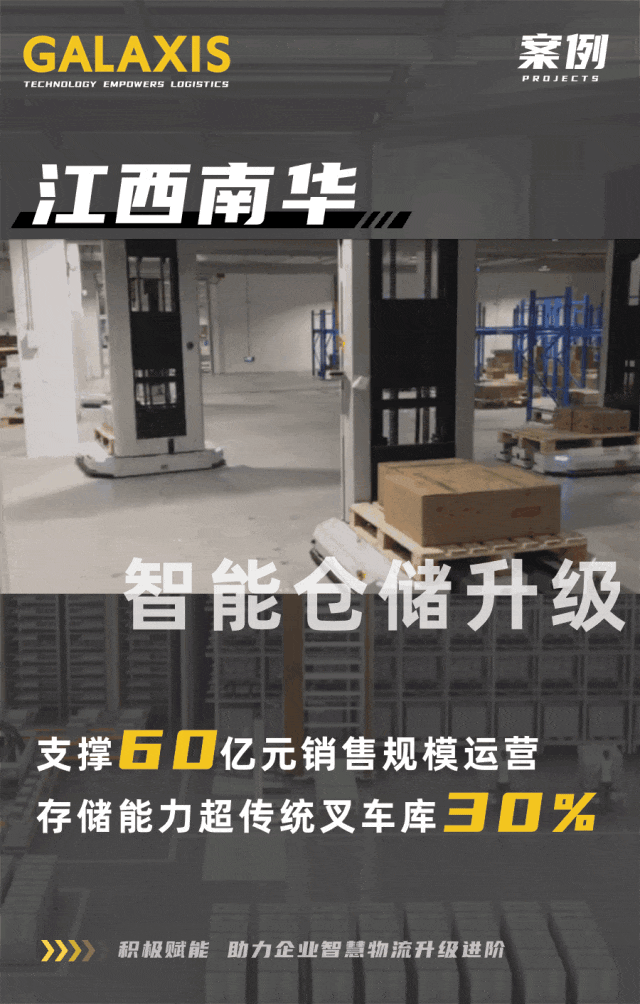 基于以上痛點(diǎn),江西南華再度攜手凱樂(lè)士科技,在其新庫(kù)房區(qū)域內(nèi)采納凱樂(lè)士科技樓層倉(cāng)創(chuàng)新解決方案,引入PTR側(cè)叉式移動(dòng)機(jī)器人,結(jié)合倉(cāng)儲(chǔ)管理系統(tǒng)與機(jī)器人調(diào)度系統(tǒng),實(shí)現(xiàn)庫(kù)區(qū)智能化、數(shù)字化、無(wú)人化的物流系統(tǒng)建設(shè)。