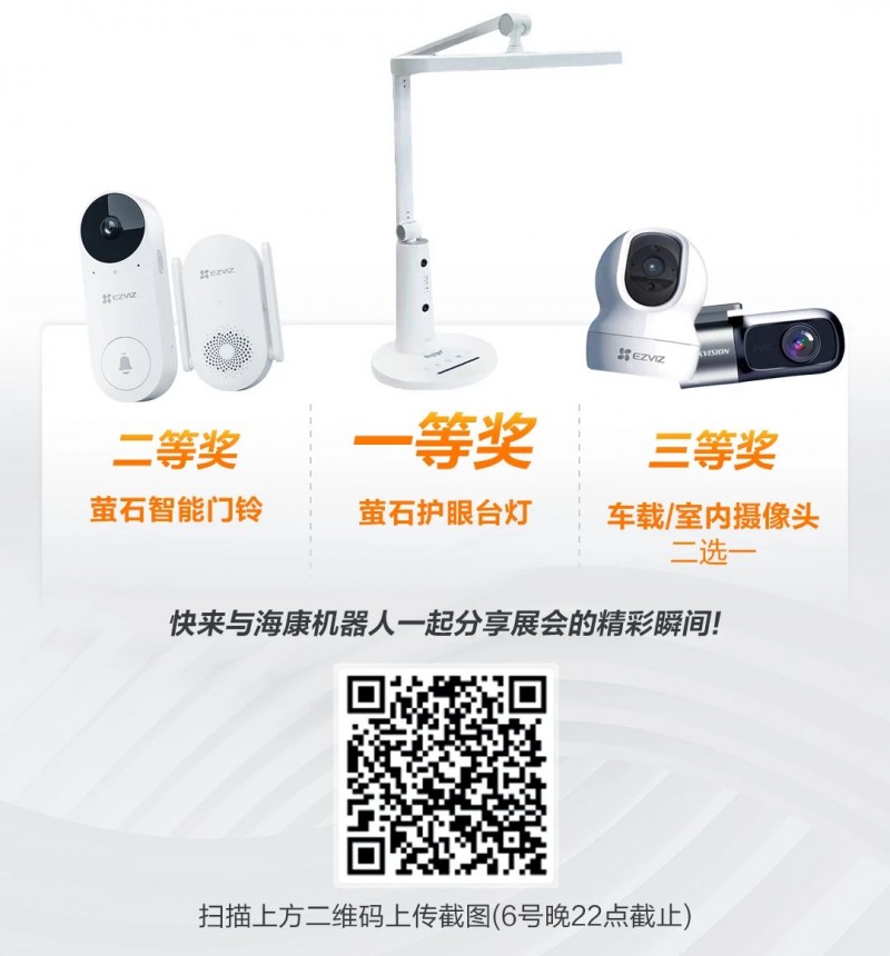 拍抖音,贏大獎!7月3-5日,在抖音上發布與海康機器人汽車展相關的原創視頻,參與話題:#海康機器人、#汽車制造、#上海汽車裝備展/AMTS,并在7月6號晚22點前掃描二維碼上傳視頻閱讀量截圖,即可領取周邊禮品一份,更有豐富大獎等您來拿!