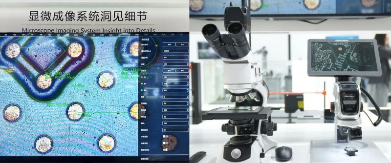 第一套是??禉C器人自研的變倍體式顯微成像系統,減輕工廠檢驗人員長時間檢測帶來的眼睛疲勞,且相機內部植入了幾何測量算法,可完成點、線、圓、矩形、角度等測量。