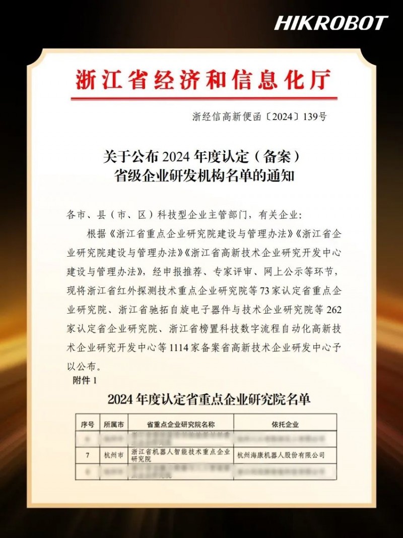一路高歌,屢創(chuàng)佳績!近年來,海康機(jī)器人在科技創(chuàng)新領(lǐng)域的卓越表現(xiàn)得到廣泛認(rèn)可,2024年榮膺“國家重點(diǎn)軟件企業(yè)”、“全省工業(yè)大數(shù)據(jù)與機(jī)器人智能系統(tǒng)重點(diǎn)實(shí)驗(yàn)室”、“2024浙江省科學(xué)技術(shù)進(jìn)步三等獎”等眾多榮譽(yù)獎項(xiàng)。