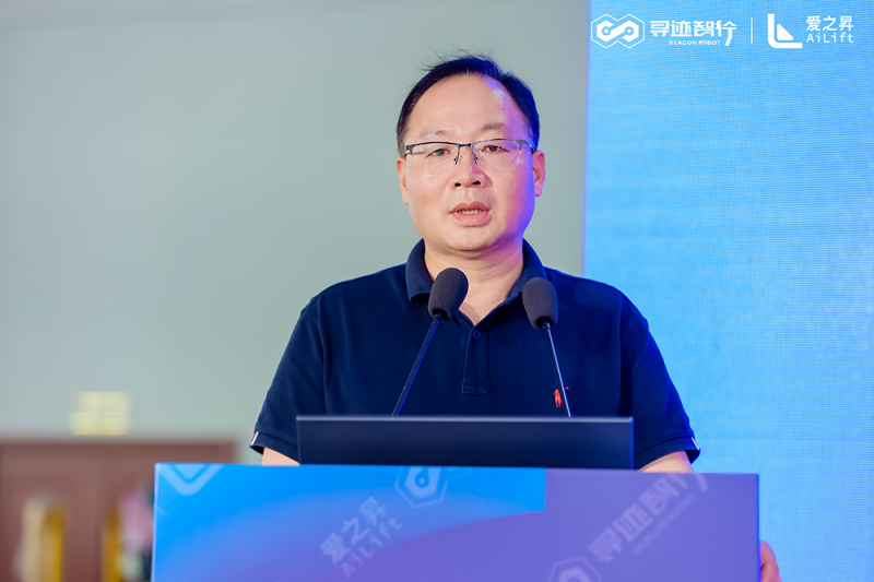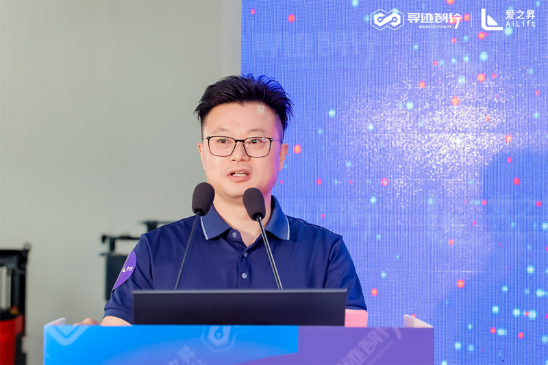 尋跡智行董事鐘立鐸圍繞智能制造行業趨勢與企業品牌理念展開深度分享。全新的品牌標識融合了現代科技元素與創新設計理念,象征著尋跡智行在智能搬運領域不斷探索的精神與無限可能。他強調,尋跡智行的企業定位是 “全場景智能物流方案構建者”,將通過“算法 + 硬件 + 數據” 的三位一體模式,為客戶提供從單機自動化到全廠物流互聯的全周期服務,滿足客戶在不同場景下的智能物流需求。