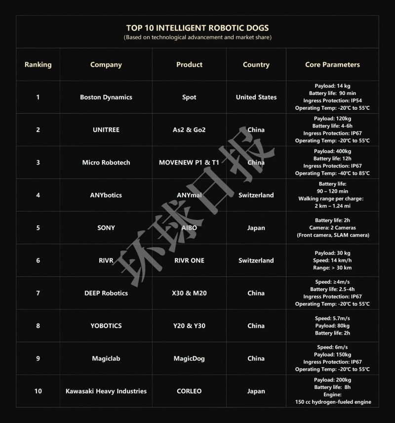 近日,《環球日報》發布世界十大智能機器狗榜單。憑借技術優勢和市場份額的領先性,中國企業宇樹科技、具微科技、ink-id="link-1775630936585-0.15601747090660578">云深處科技、優寶特、魔法原子五家上榜,占領榜單一半席位。其中,杭州作為全球機器狗出貨量最大的城市,“杭州四小狗”企業三家上榜。上榜企業如下: