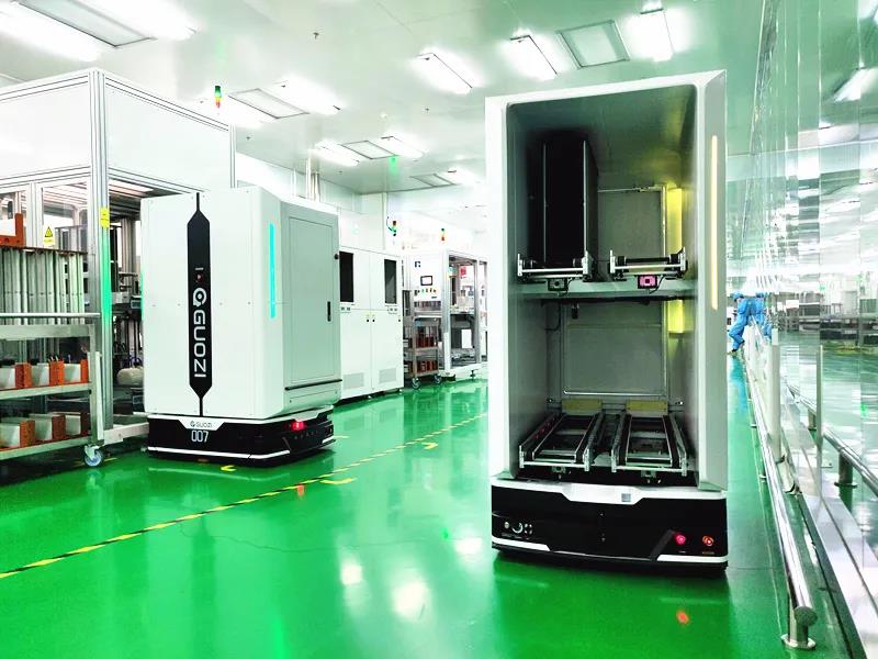 國自光伏晶硅電池片工廠AGV智能搬運整體解決方案,能實現(xiàn)大規(guī)模智能物流機器人物料轉運,替代原有人工作業(yè)模式,大幅提升產能并持續(xù)保證生產線穩(wěn)定運行。