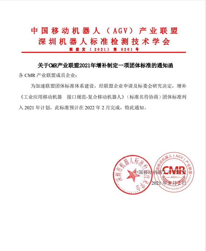 關(guān)于CMR產(chǎn)業(yè)聯(lián)盟2021年增補定制一項團體標準的通知函