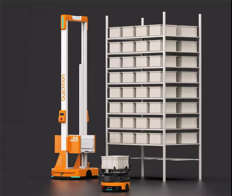 2020年,在料箱機器人的基礎上,快倉則推出了QuickPick智能機器人解決方案,通過“料箱機器人+一層緩存+載具搬運機器人”組合模式,進一步提升效率。2021年,快倉QuickPick方案迭代升級,近一步提升了揀選效率。
