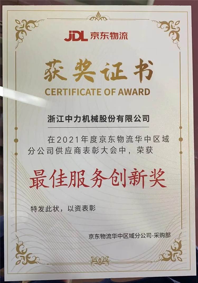 中力榮獲2021年度“最佳服務(wù)創(chuàng)新獎(jiǎng)”榮譽(yù)稱號(hào),肯定了中力在為客戶提升產(chǎn)業(yè)效率方面作出的杰出貢獻(xiàn)。